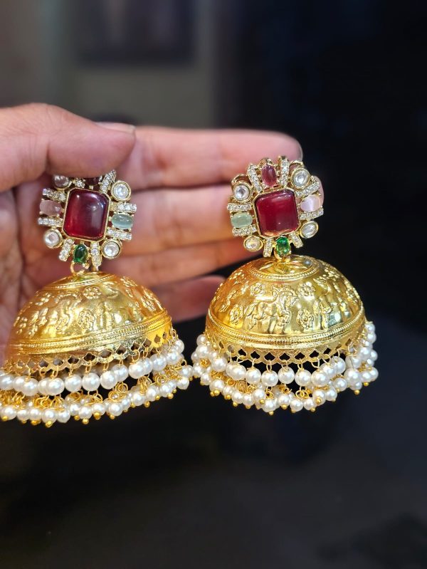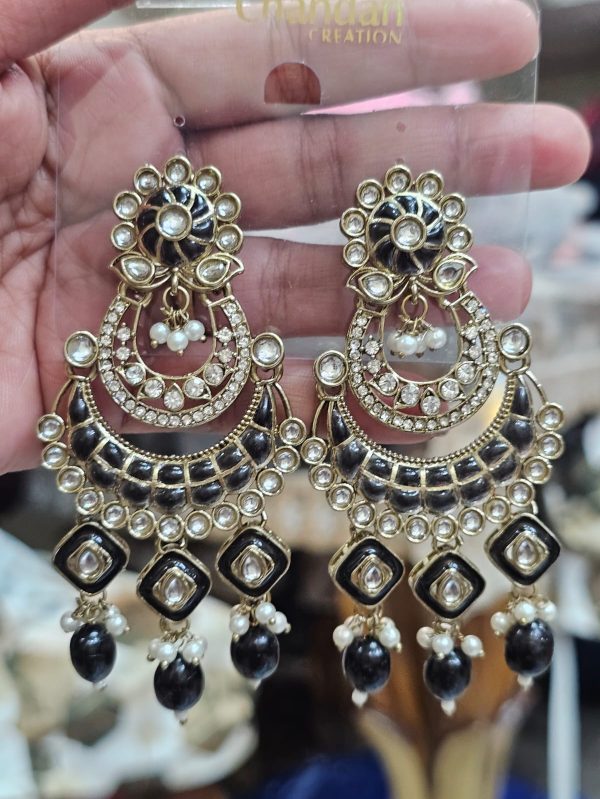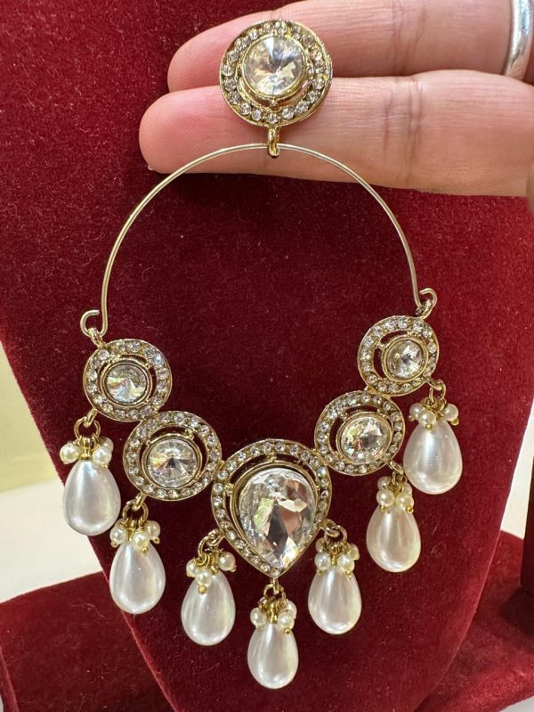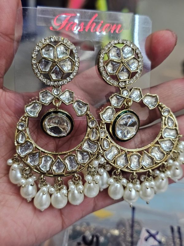 Elegant Kundan Meenakari Chandbali with Pearl Detailing