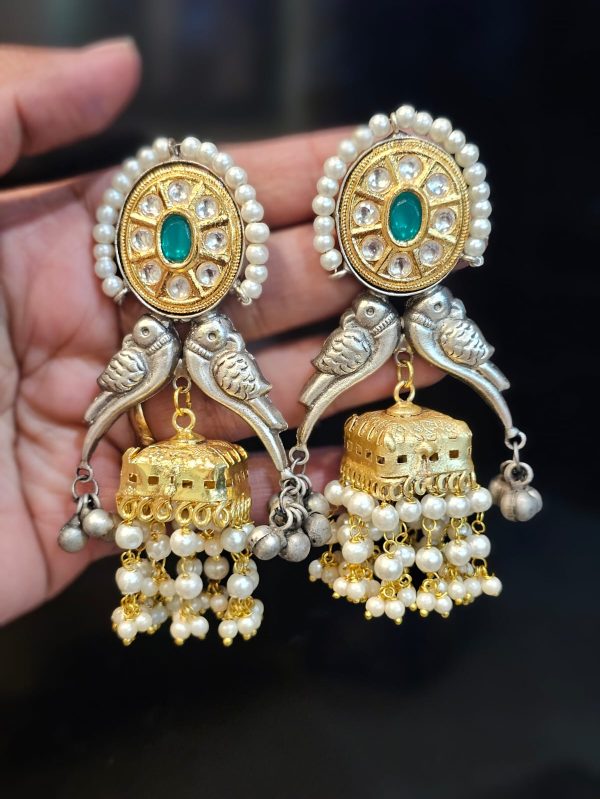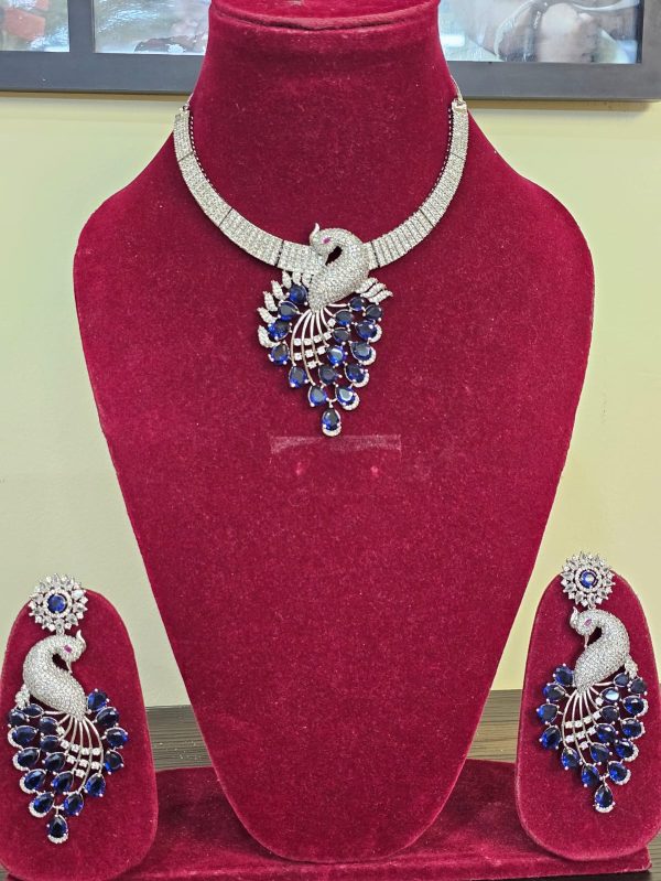 American diamond with neno setting on cheek line with hanging peacock pandent
