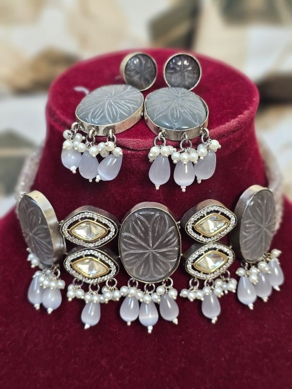 Elegant Handcrafted Stone Choker Set with Matching Earrings