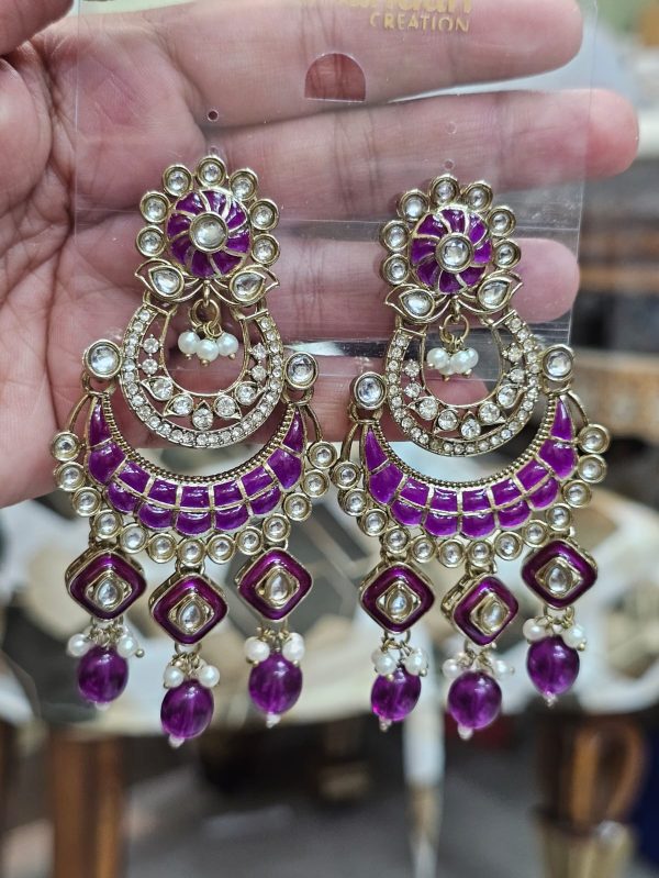 This Elegant Kundan Meenakari Chandbali beautifully blends traditional artistry with premium craftsmanship. The piece features intricate meenakari work paired with high-quality kundan stones that create a rich, royal look. The detailed enamel design adds a vibrant touch, while the pearl hangings enhance its graceful finish. Perfect for weddings, festive celebrations, or ethnic outfits, this jewellery piece brings a timeless charm and a touch of heritage to your collection.