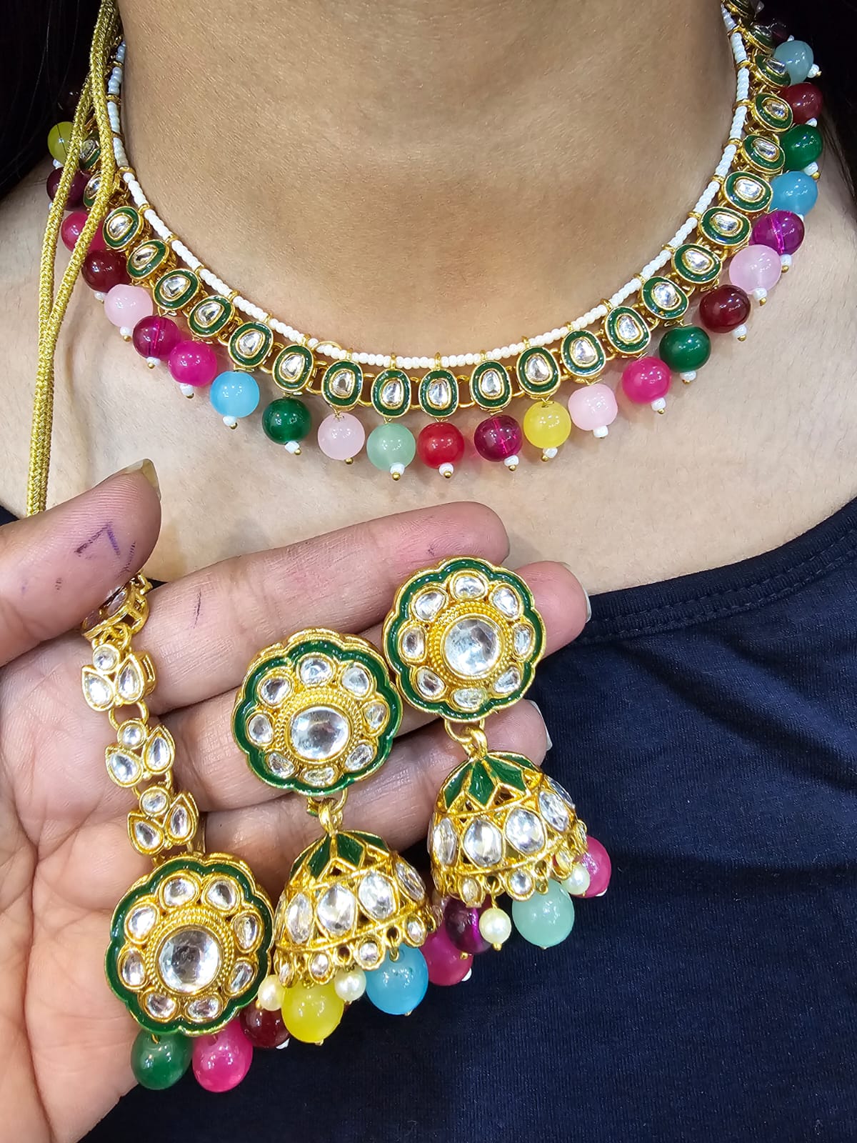 Shop Kundan Meenakari choker sets for a regal ethnic look. Perfect for weddings, festivals & special occasions. Premium finish with intricate detailing.