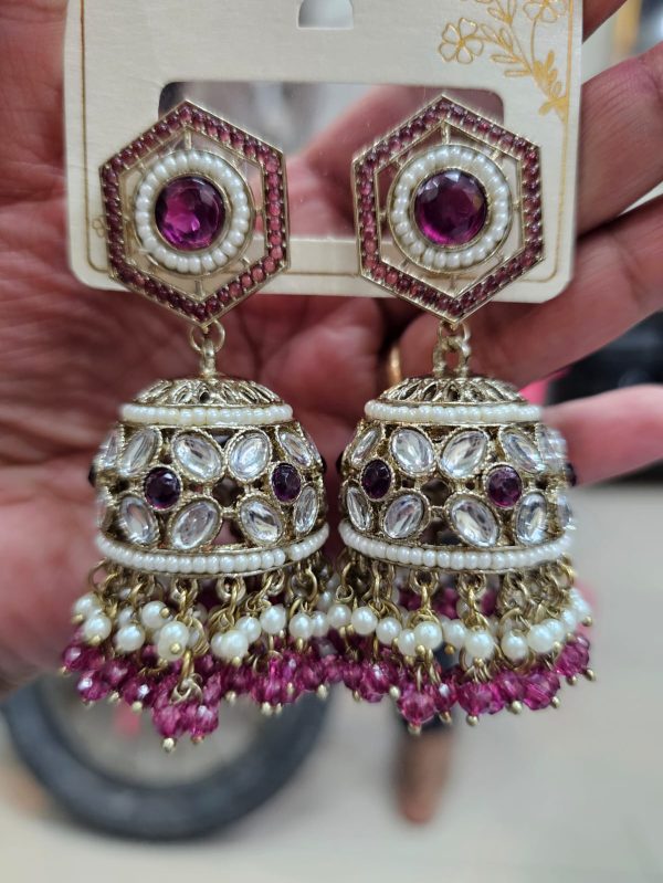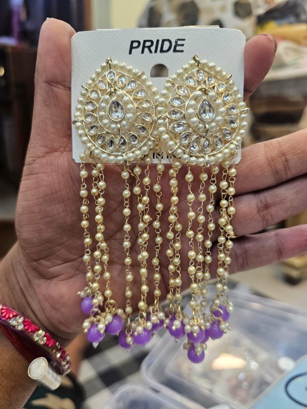 Add a touch of royal elegance to your ethnic look with these multicolour moti and kundan work jhumkas. Designed with intricate detailing, the earring features a stunning double-layer jhumka style, complemented by vibrant beads and premium pearl work. The double support lock provides extra comfort and ensures a secure fit, making it perfect for weddings, festive occasions, and traditional outfits. A beautiful blend of craftsmanship and colour, these jhumkas effortlessly elevate your jewellery collection.