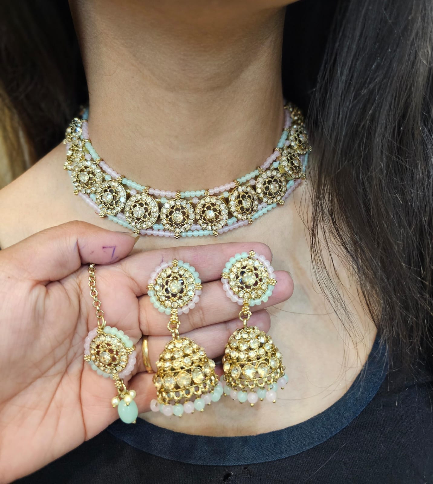 Shop pastel colour single line choker for a subtle yet stylish look. Perfect for weddings, parties & everyday wear. Light-weight, elegant & trendy design.