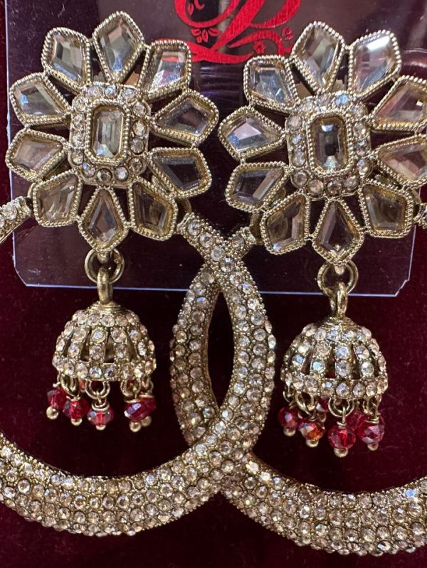 Stunning reverse AD stone Bali with jhumka, combining classic charm and modern sparkle. Lightweight and elegant, ideal for festive wear or special occasions. Adds timeless beauty to any ethnic look.