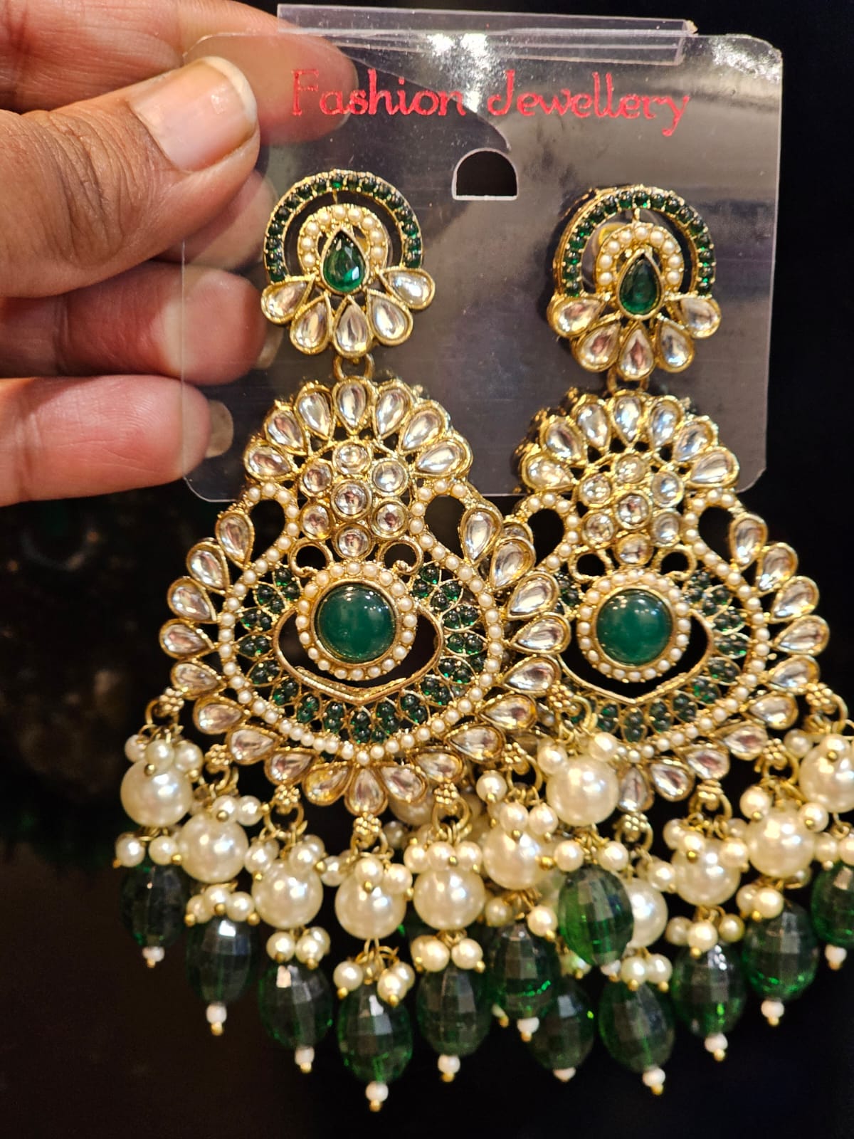 Be the first to review “Traditional Kundan Green & Pearl Chandbali Earrings” Cancel reply